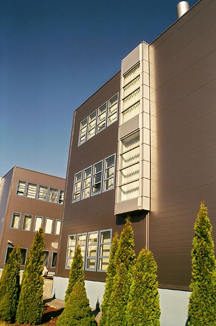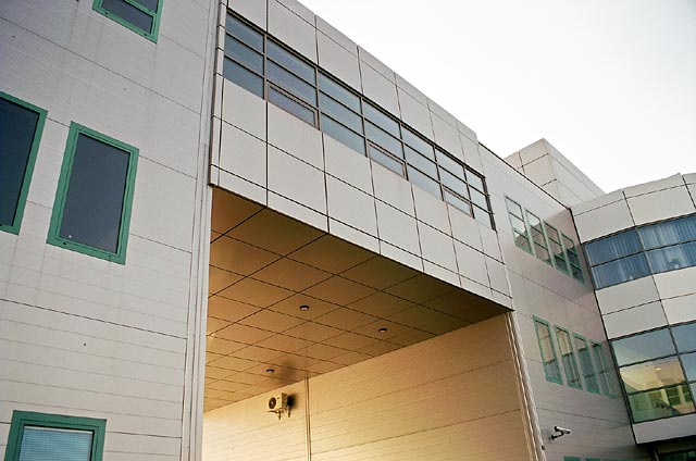 Elewacja zewnętrzna z warstwowych płyt aluminiowych w systemie Alucobond.