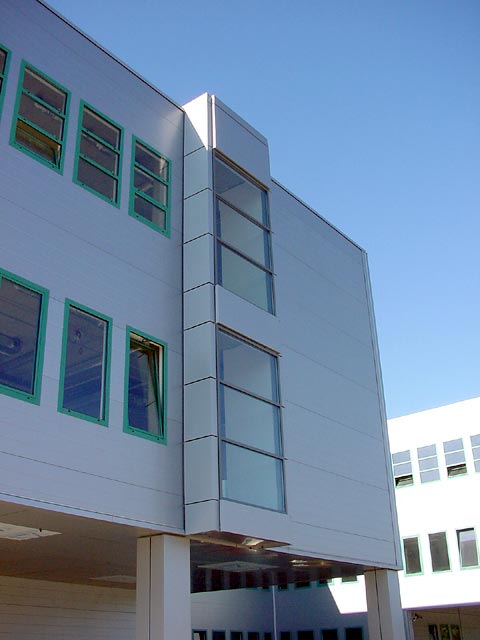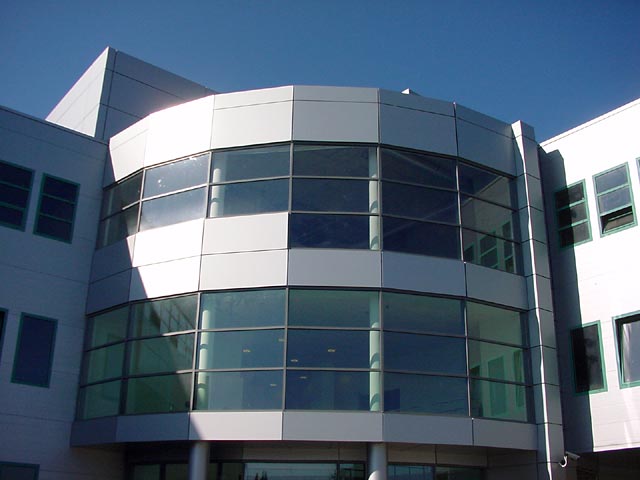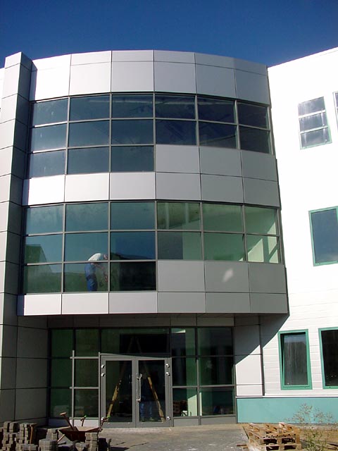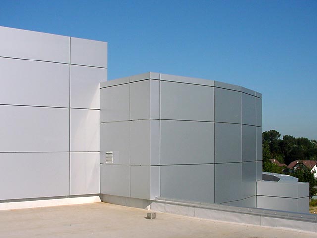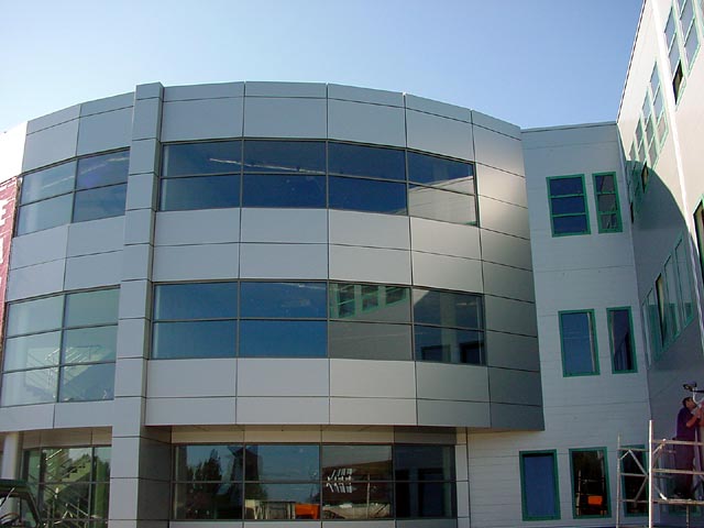 Elewacja zewnętrzna z warstwowych płyt aluminiowych w systemie Alucobond.