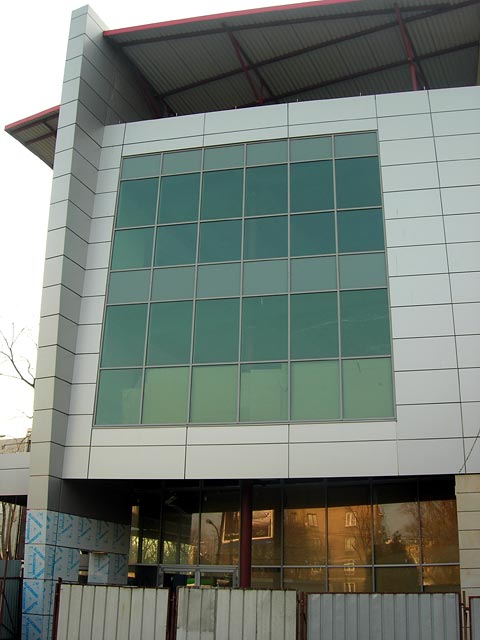 Elewacja zewnętrzna z warstwowych płyt aluminiowych w systemie Alucobond.