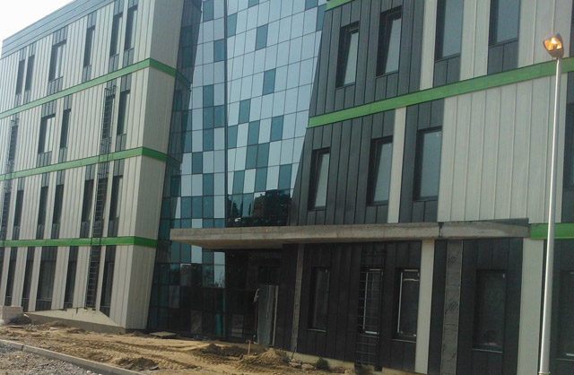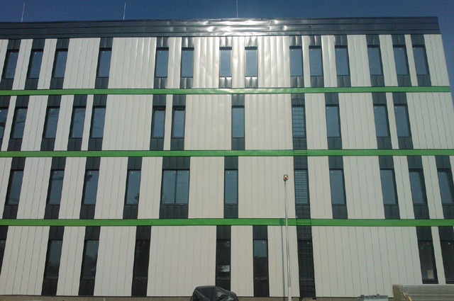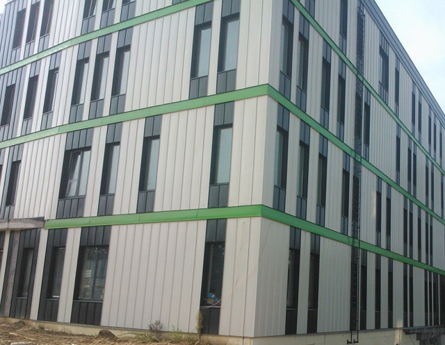 prace elewacyjne: blacha aluminiowa na ruszcie metalowym wraz z termoizolacją z wełny mineralnej i obróbkami blacharskimi
